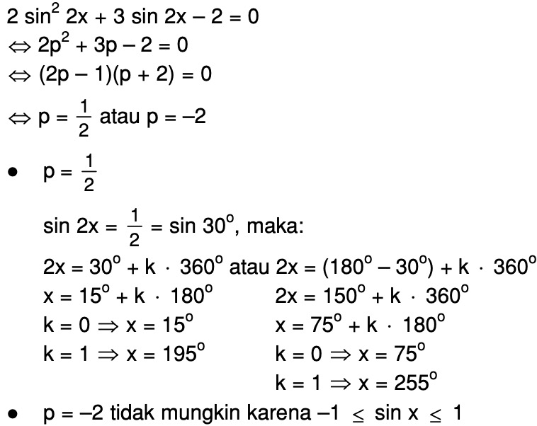 Himpunan Penyelesaian Dari 2 Sin2 2x 3 Sin 2x 2 0 Untuk 0 X 360 Adalah Mas Dayat