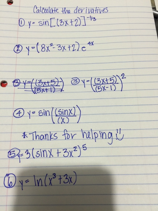 Solved Calculate The Derivations Y Sin 3x 2 1 3 Y Chegg Com